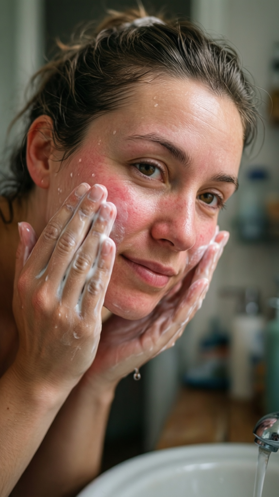 Use a gentle, hydrating cleanser that removes dirt without stripping oils.